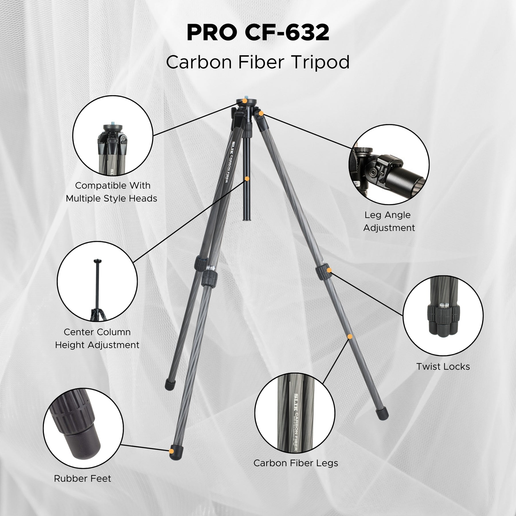 The SLIK Pro CF-632 Carbon Fiber Tripod is designed for photographers/videographers, nature enthusiasts, and travelers. This tripod is specifically crafted for individuals using cameras, spotting scopes, or binoculars.