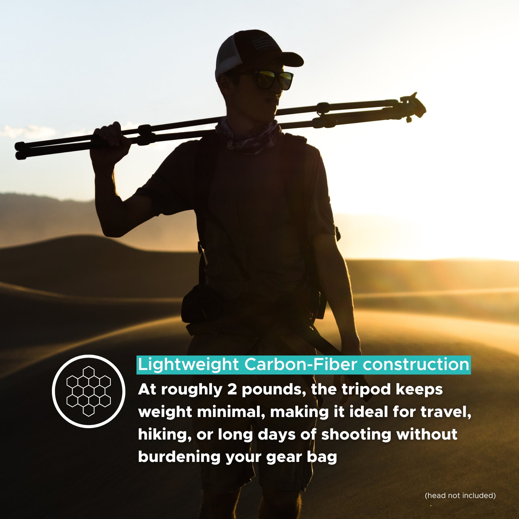 The 8-layer carbon fiber legs have 4 sections that quickly deploy and lock using 3 twist locks that are easy to operate with or without gloves. The legs Anti-Rotational System (ARS) is crafted into the leg locks and does not permit individual leg sections to rotate inside each other.