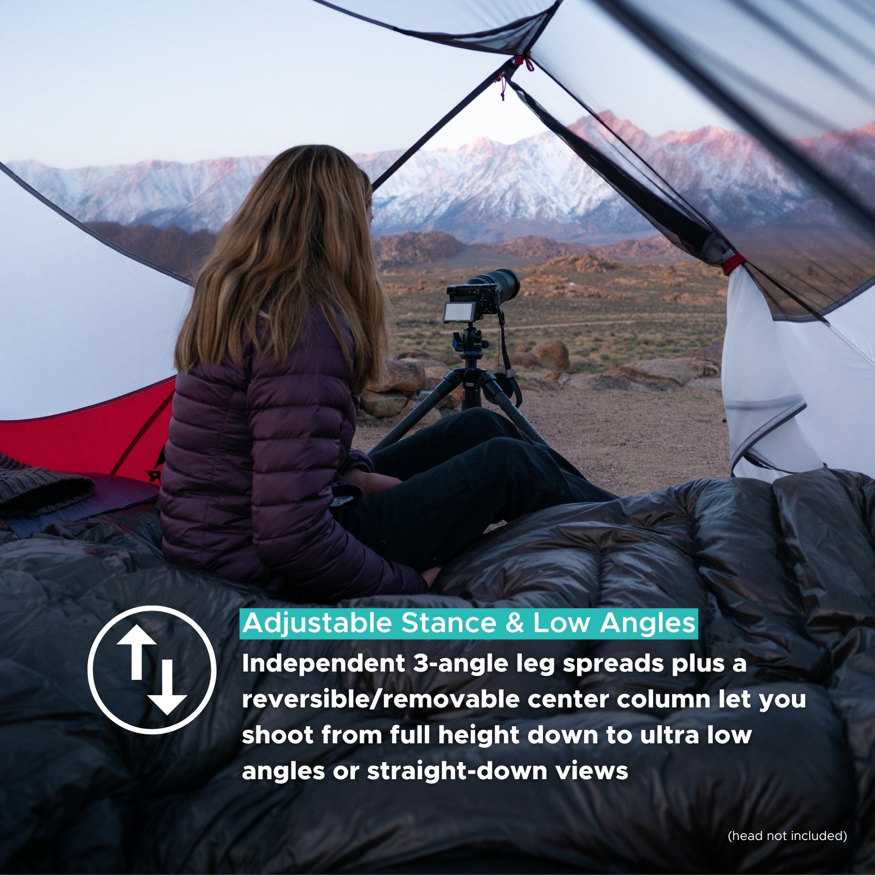 - The column can be reversed so the head can be positioned between the legs instead of on top. This lets you position the camera very close to the ground or provide a straight down view of your subject.